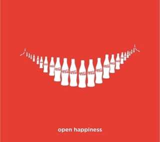 “Coca-Cola”nın aşağıdakı posterində butulkaların düzülüşü ilə gülüş təsvir edilmişdir. Cəmi iki sözdən ibarət “open happiness” (“xoşbəxtliyin qapağını aç”) metrosu isə yaradıcı fikri tamamlayır.