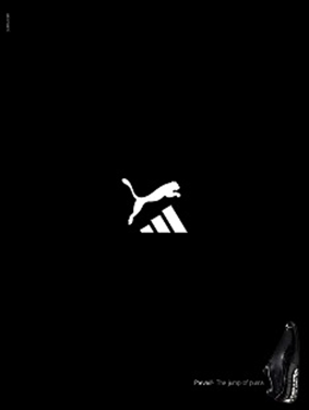 Brendlərin apardığı ədavət bəzən çox kreativ ideyalara gətirib çıxarır. Qara fonda “Puma”nın “Adidas”ın üzərindən atlanmasını göstərməklə, “Puma”nın daha üstün olduğunu vurğulayıblar. Sağ küncdə isə krosovka əks olunub. Bu ideyanı cəmi iki sözlə ̶ “Pumanın atlayışı” adlandırıblar.